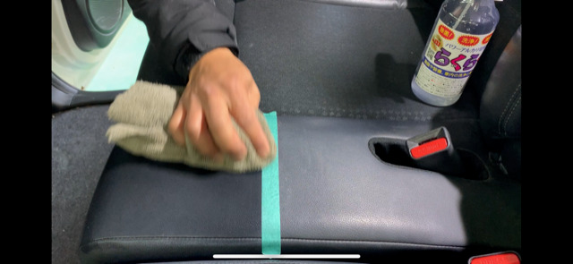 今回は、レザー部分のクリーニングです。5倍液を使用しました。