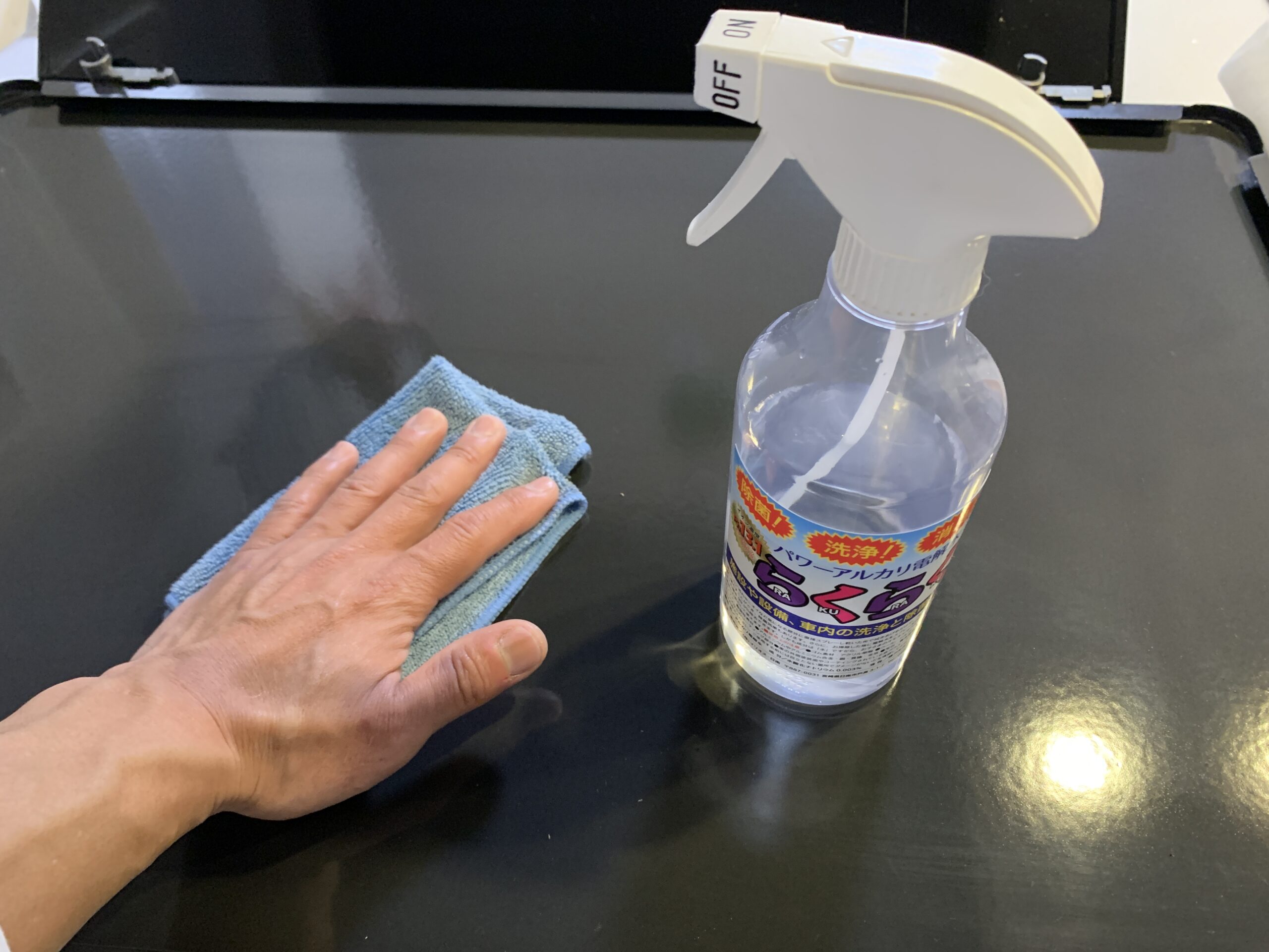 後は乾いたウエス等で浮いた油汚れと電解水を拭き取れば終了!